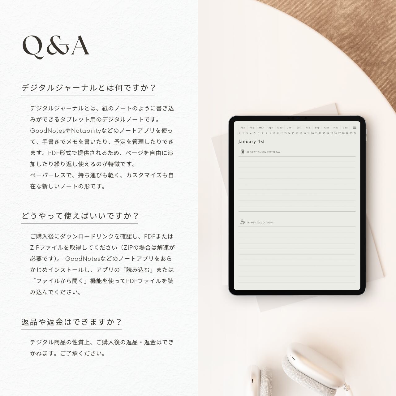 ・こちらはGoodnotesなどの手書きノートアプリで使用できるジャーナルです。