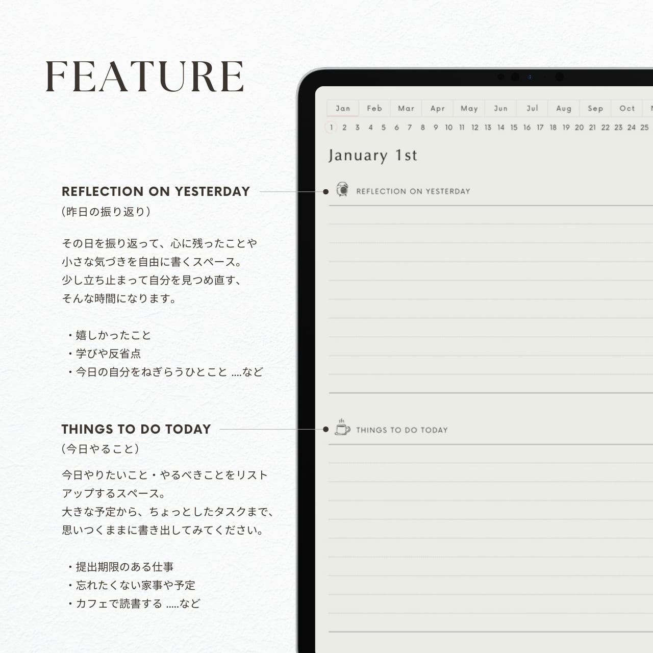 今日やるべきことや、やりたいこと、小さな目標を書き出して、1日を自分らしくスタートさせる準備が整います。