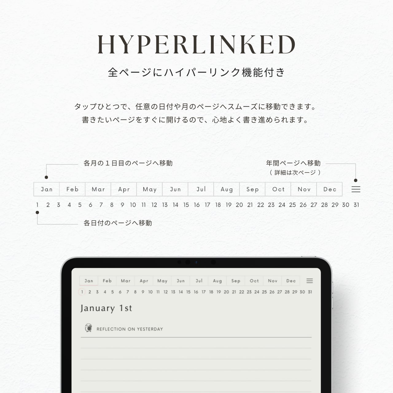 ・書きたい日付にすぐ移動できる、便利なハイパーリンク付きです。
