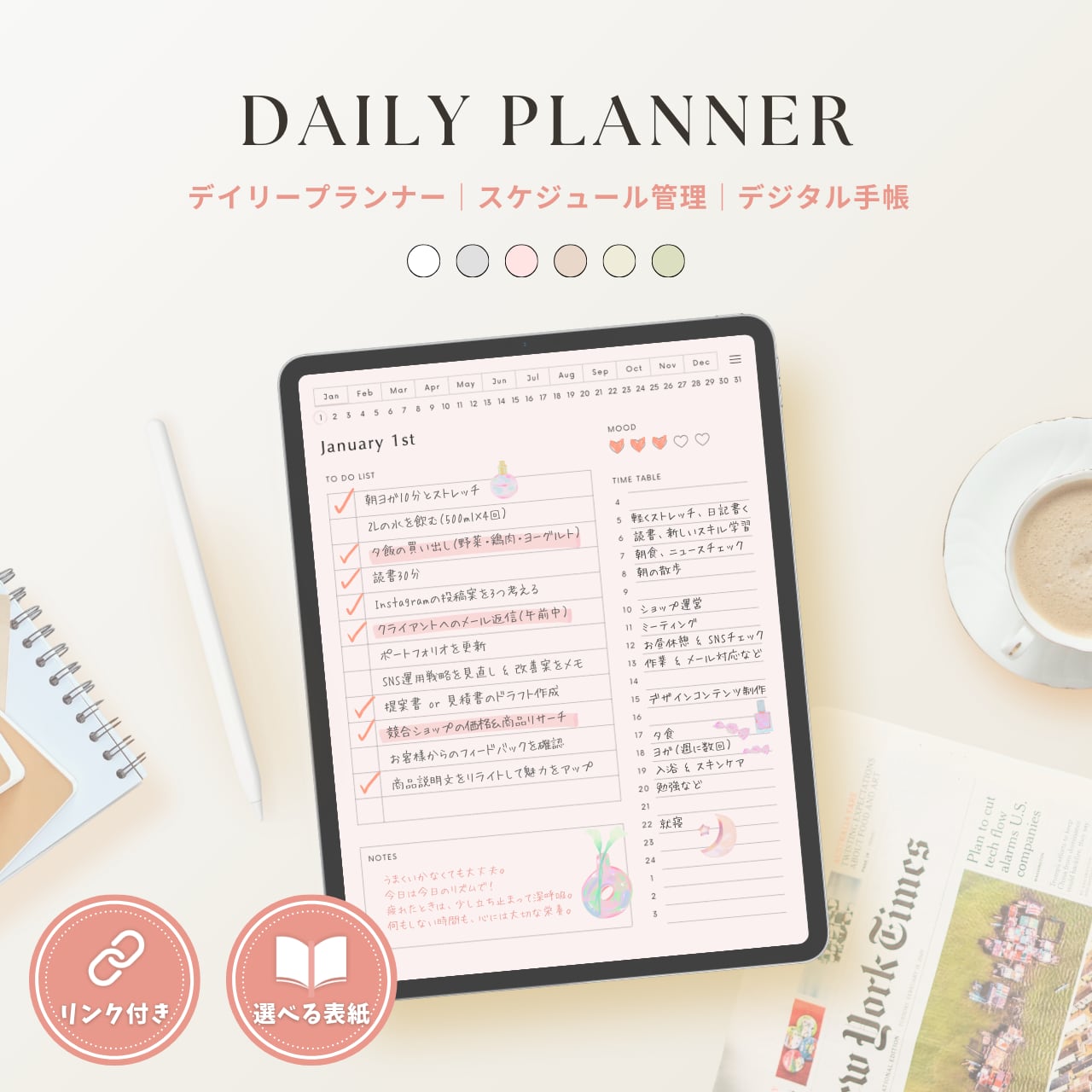 毎日の予定やタスク、気持ちの記録まで、この一冊で整うデジタルプランナー。