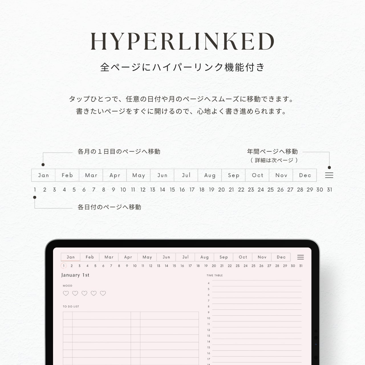 ・書きたい日付にすぐ移動できる、便利なハイパーリンク付きです。