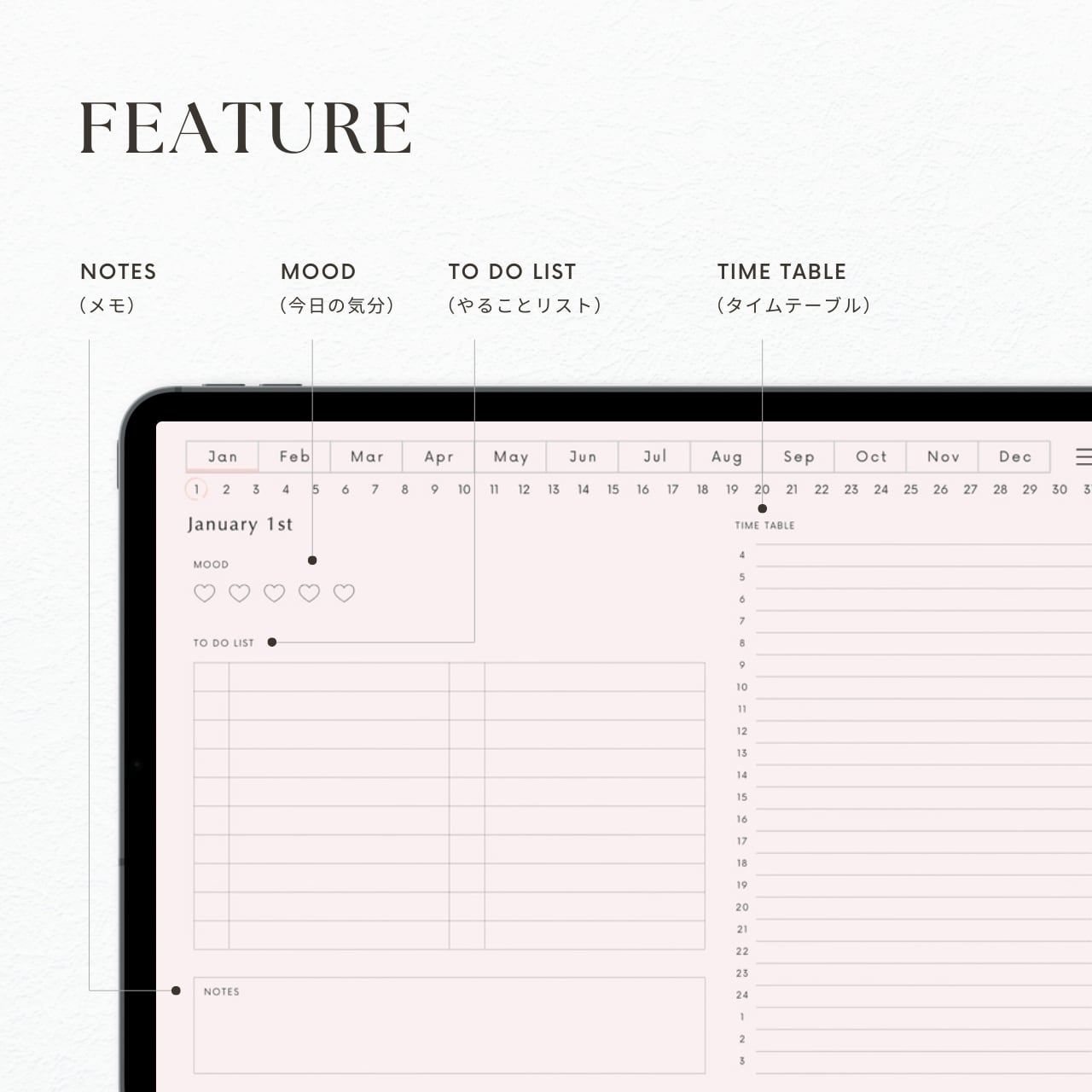 毎日の予定やタスク、気持ちの記録まで、この一冊で整うデジタルプランナー。