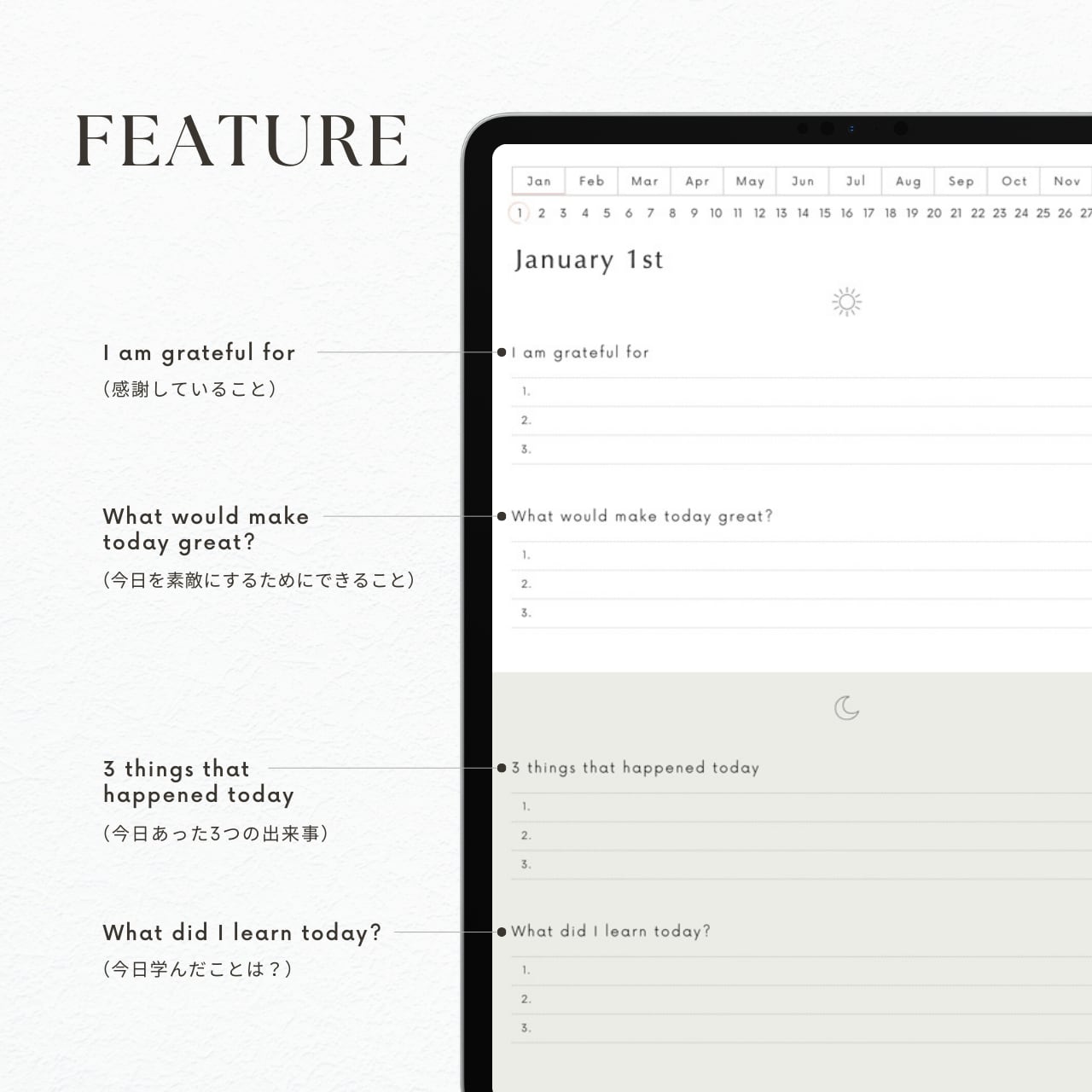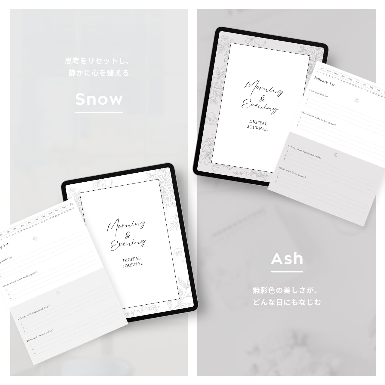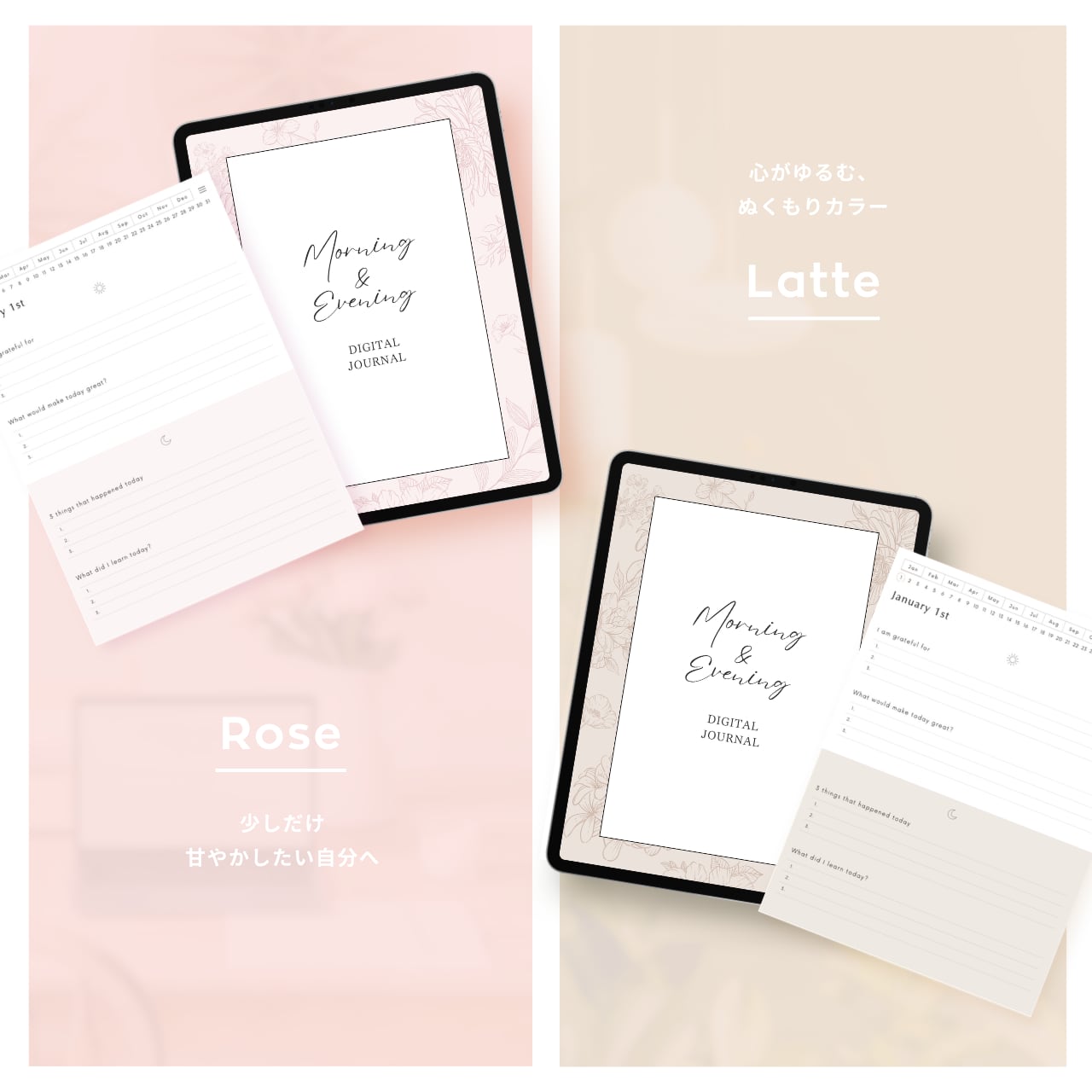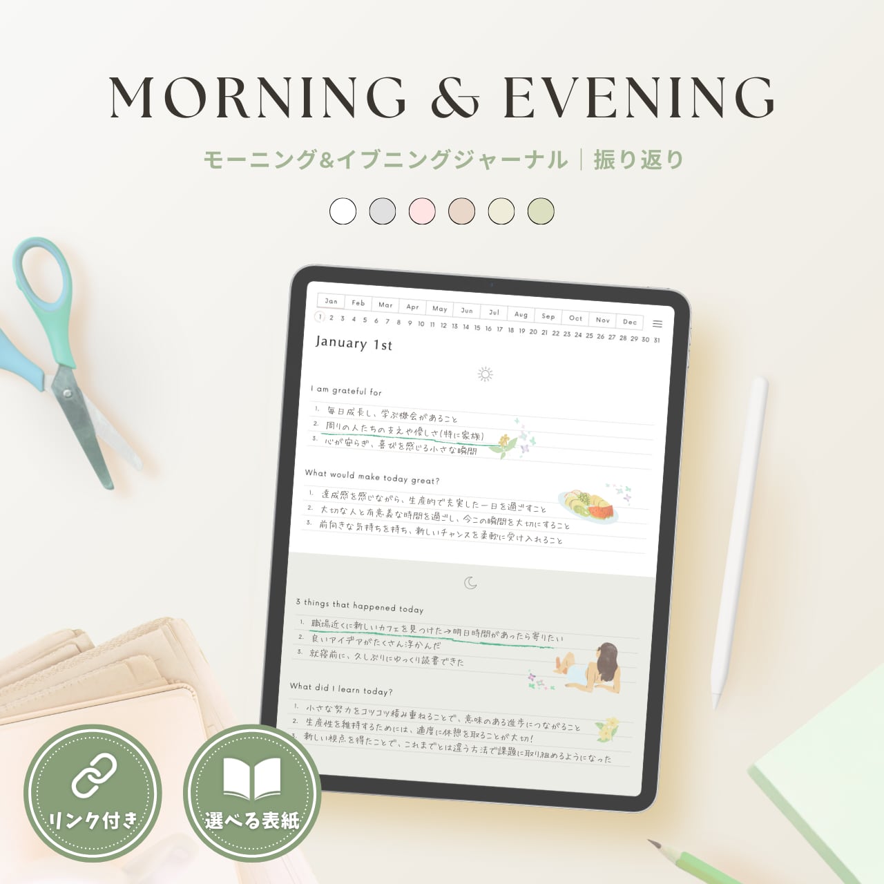 モーニング&イブニングジャーナルは、朝のポジティブな気持ちと夜の振り返りを大切にするジャーナルです。