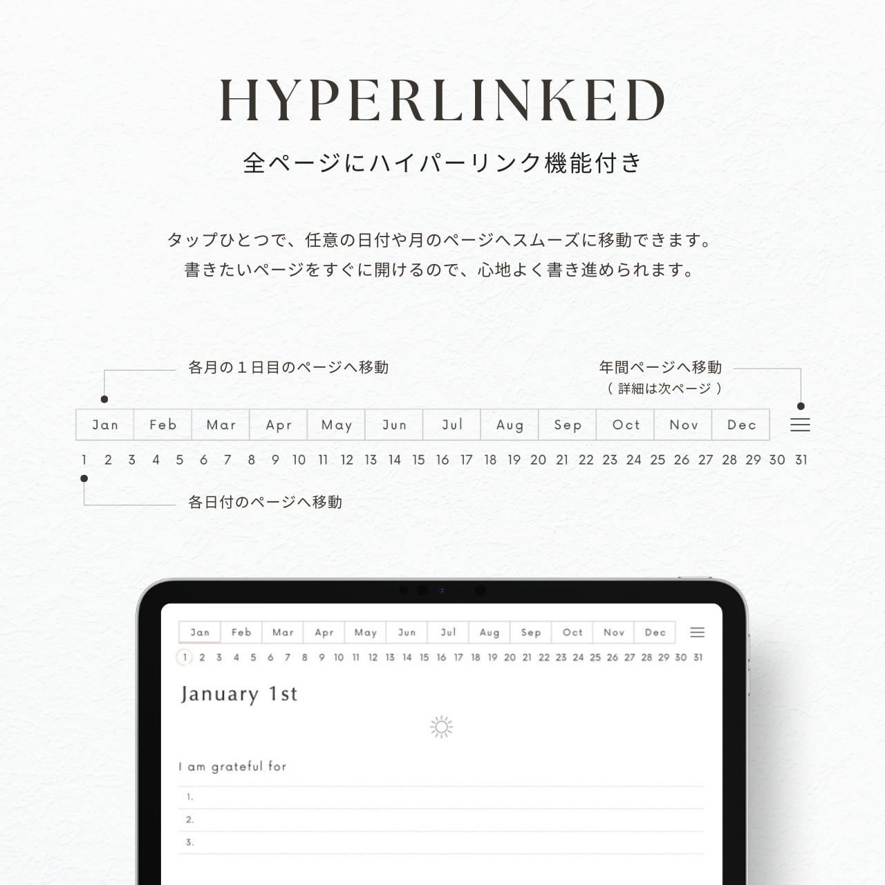 ・書きたい日付にすぐ移動できる、便利なハイパーリンク付きです。