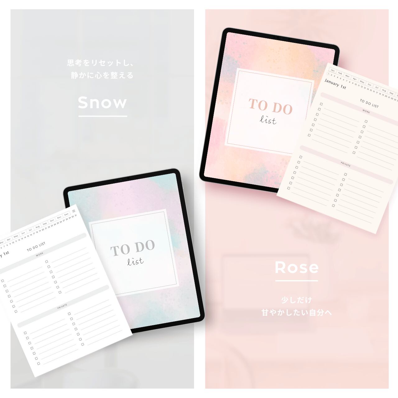 ・毎日のToDoリストページには、仕事とプライベート、それぞれのタスクを書き分けられるスペースがあります。