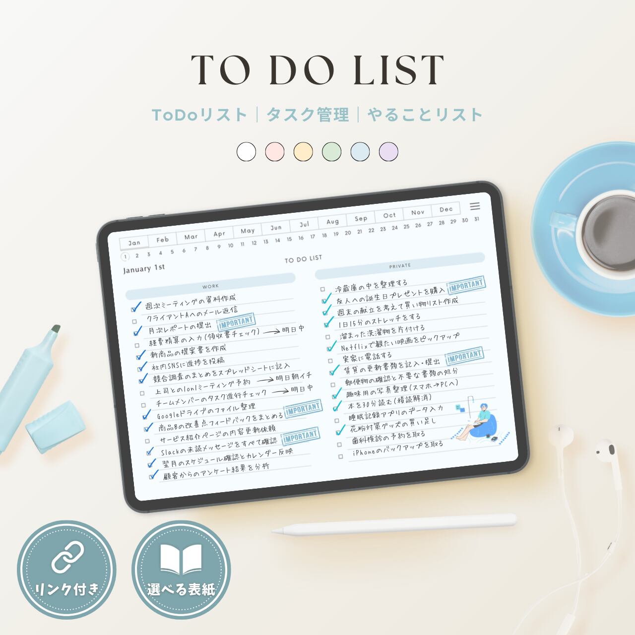 ToDoリスト┊︎6色セット┊︎タスク管理┊︎リンク付き