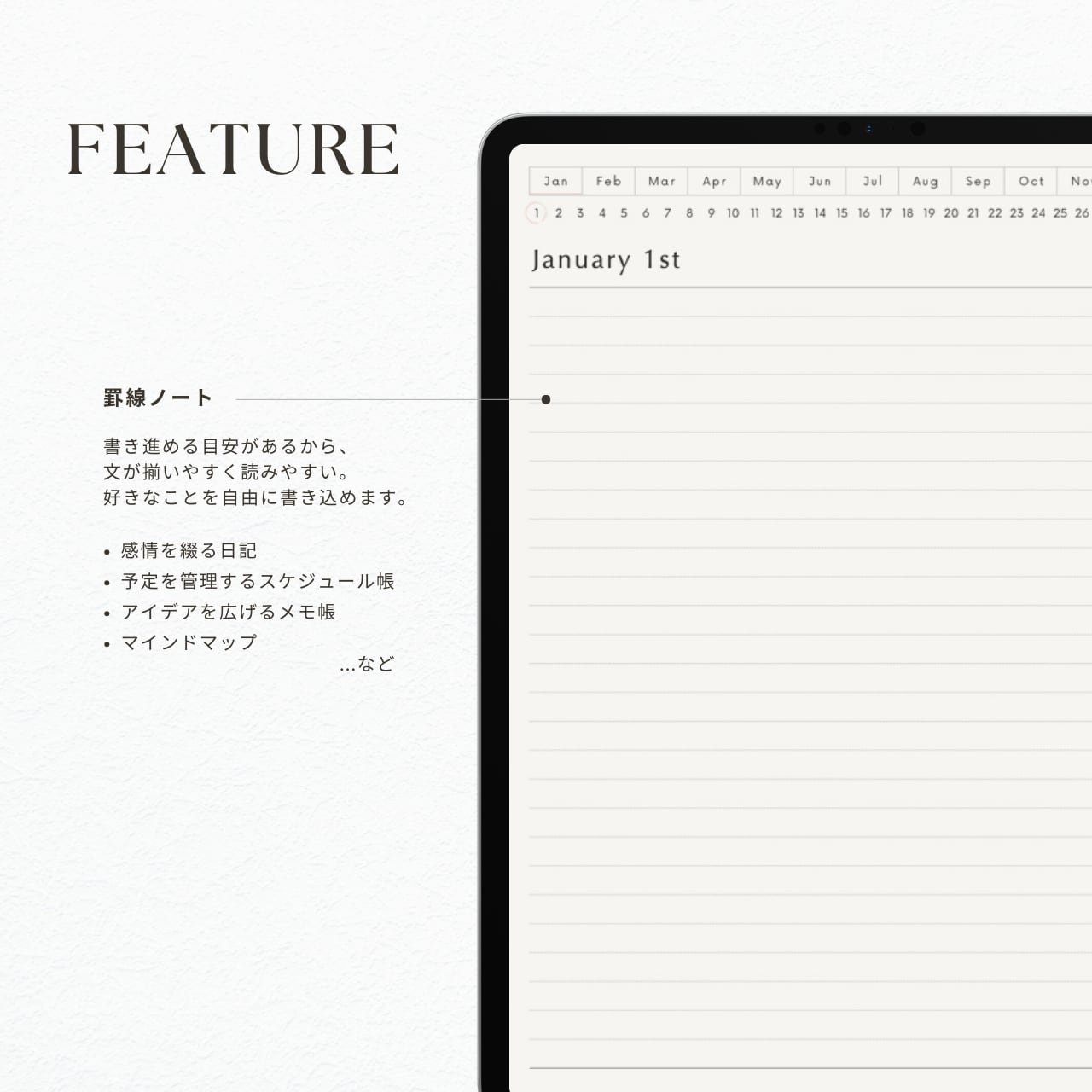 ・こちらはGoodnotesなどの手書きノートアプリで使用できるジャーナルです。