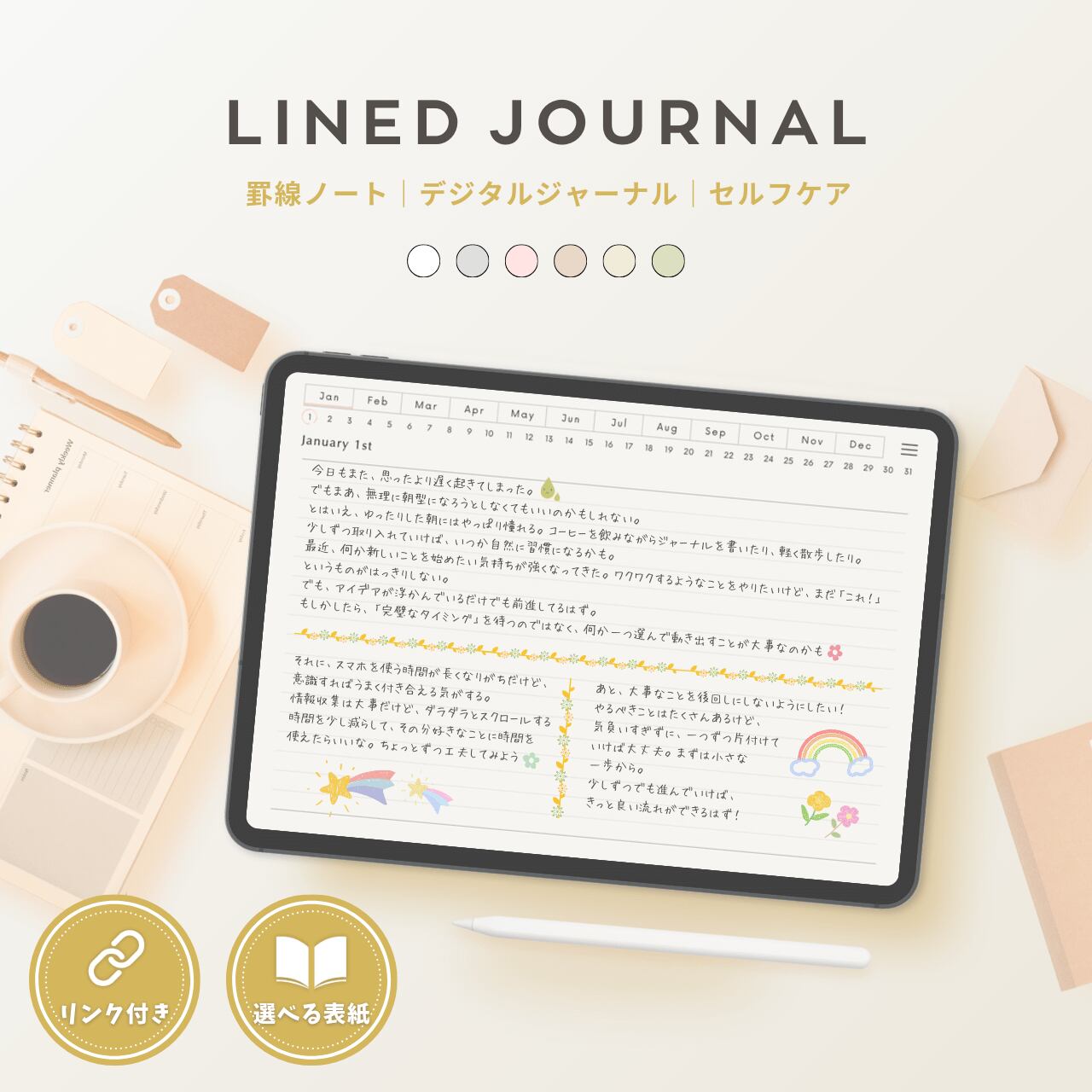罫線ノート┊︎6色セット┊︎シンプルノート┊︎デジタルジャーナル┊︎リンク付き
