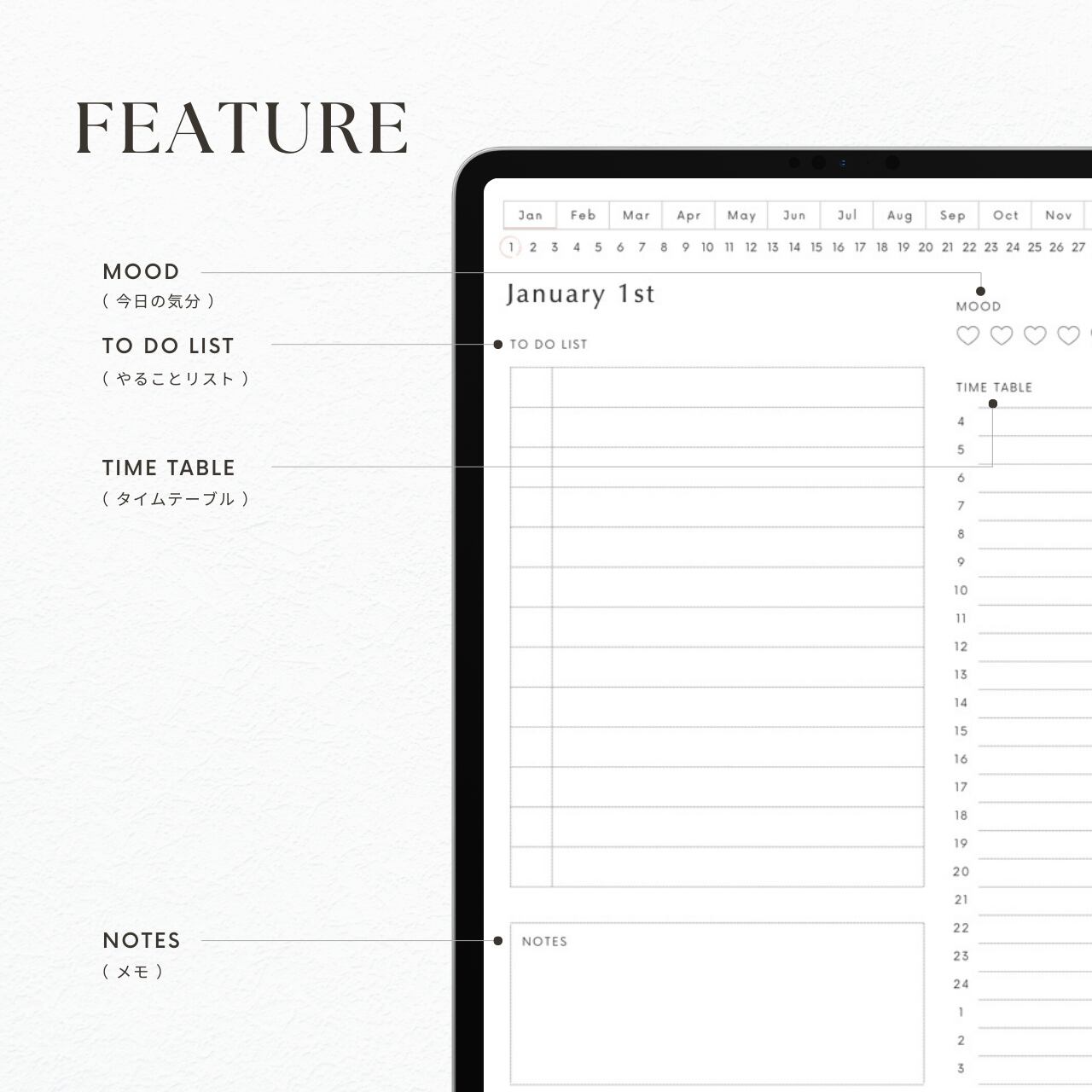 毎日の予定やタスク、気持ちの記録まで、この一冊で整うデジタルプランナー。