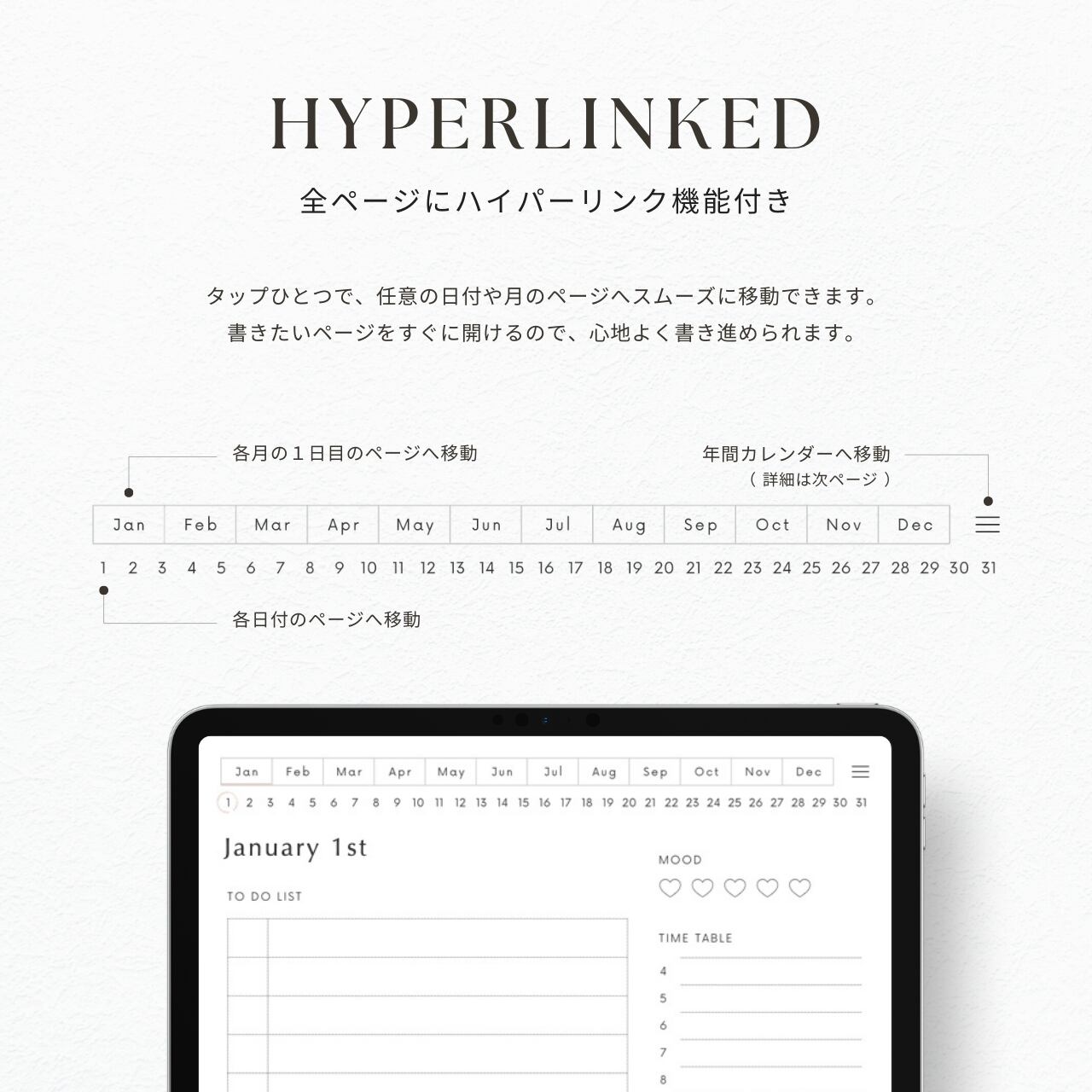 ・書きたい日付にすぐ移動できる、便利なハイパーリンク付きです。