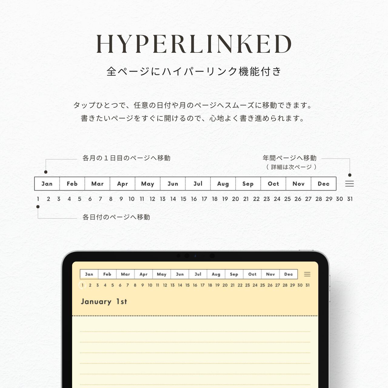 ・書きたい日付にすぐ移動できる、便利なハイパーリンク付きです。