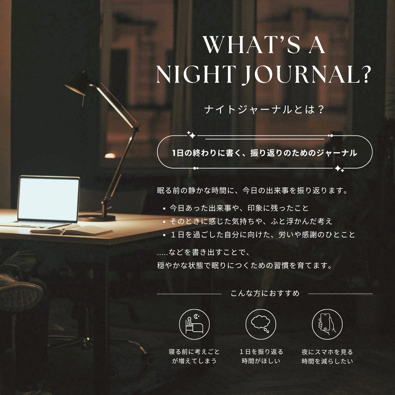 1日を振り返り、気持ちを手放すためのナイトジャーナル。