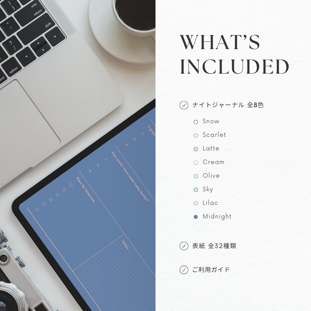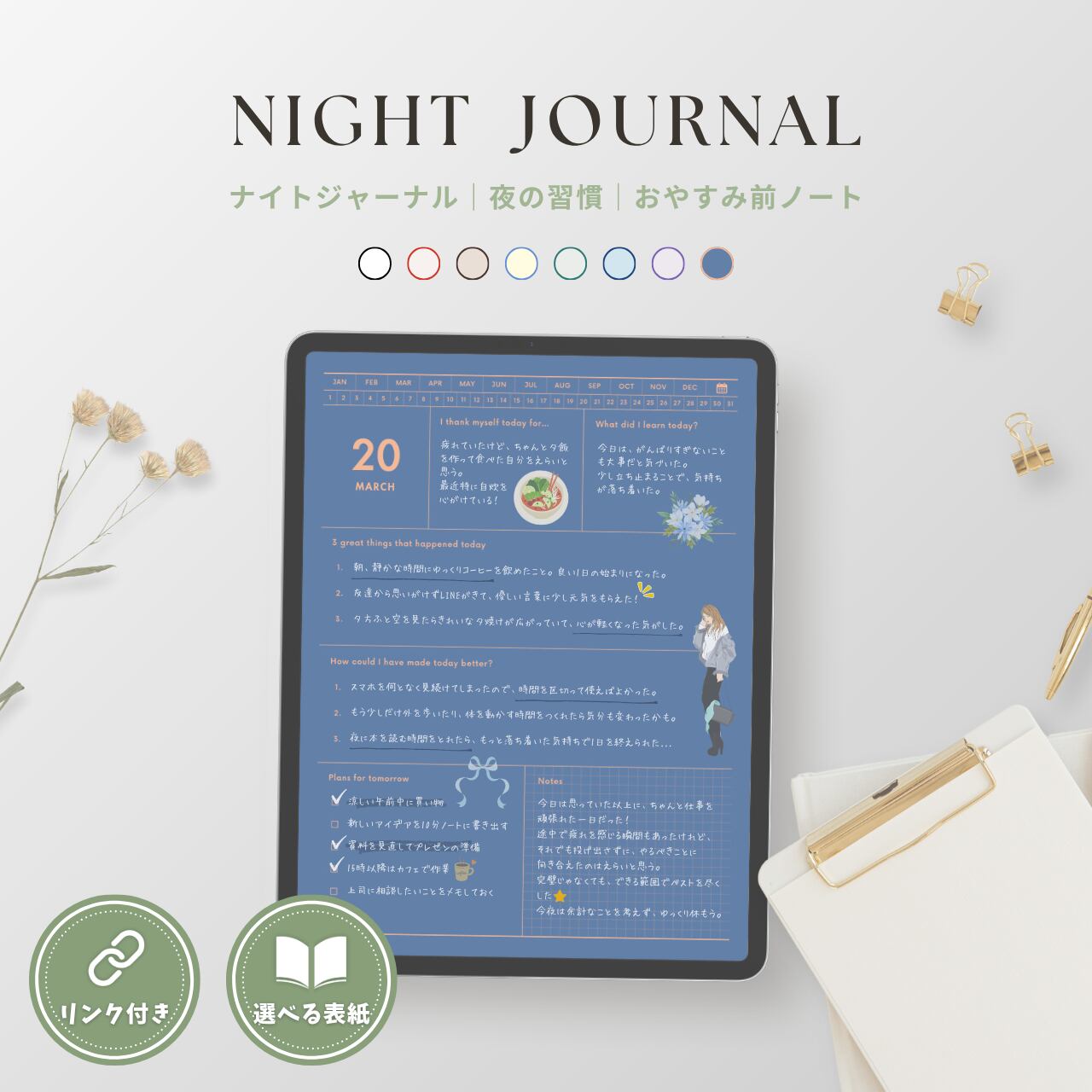ナイトジャーナル┊︎6色セット┊︎感謝日記┊︎セルフケア┊︎リンク付き